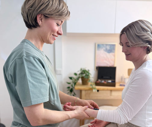 Sanfte Impulse zur Unterstützung körpereigener Regulationsprozesse. Ziel ist es, feine Ungleichgewichte frühzeitig wahrzunehmen und die Selbstregulation des Körpers zu fördern.